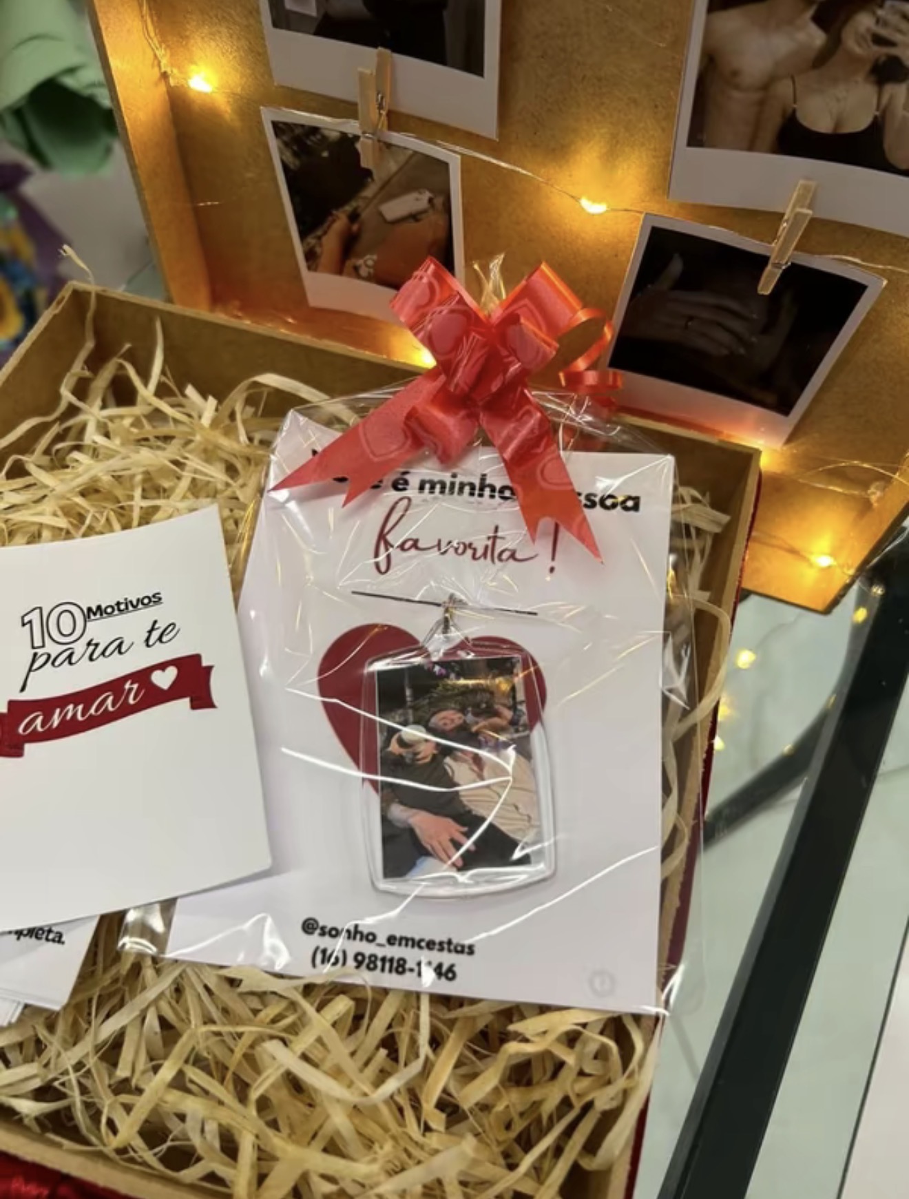 Caixa romantica com fotos,led, chaveiro,10 motivos para te amar